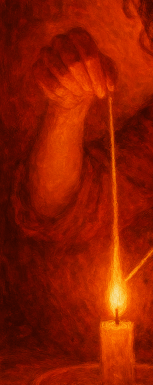 Una vela para un barco, tejida con hilos incandescentes y tonos de fuego.
