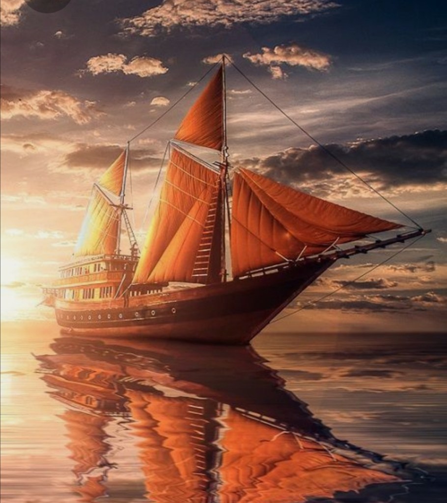 “Estimado y querido navegante, sabemos que las velas del navío son muy especiales y no tenemos muchos datos al respecto, solo aquellos que la información de su historial nos permite intuir. Por tanto, infiero que cambiarán de tono dependiendo del sitio donde se encuentren e imagino que este dibujo define cómo podría ser alguno de ellos.