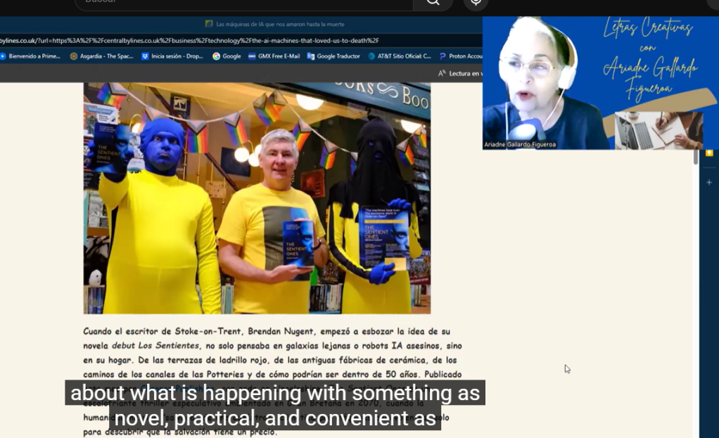 Él escribe en su artículo: The Sentient Ones es un escalofriante libro de suspenso especulativo ambientado en Gran Bretaña en 2070, cuando la humanidad ha sido “salvada” de una catástrofe climática por máquinas benevolentes, solo para descubrir que la salvación tiene un precio.